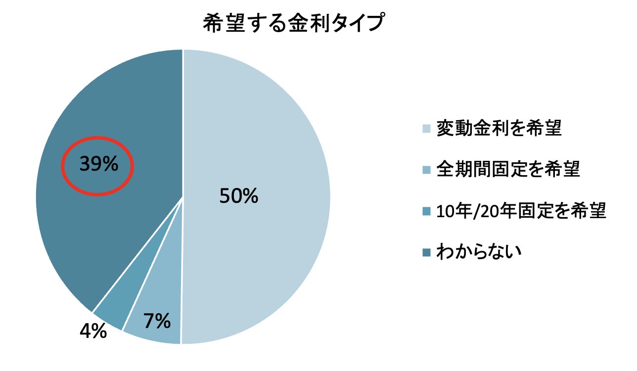 住宅ローン金利が2月から上昇しており、変動と固定の金利差が開いています。そのため、変動と固定どちらにするか悩む人が多く、利用者の約4割が希望する金利タイプを「わからない」と回答しています。金利が変動している中、相談ニーズが増加したことがモゲチェック利用が増えた大きな要因と考えています。
