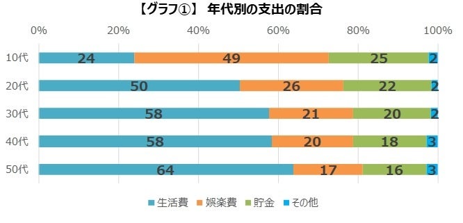10~20代は独身・単身者の割合が多く、自己判断で収入の多くを“自分の楽しみのために使う”という機会が多いと考えられますが、30代になると新たな人生の転機を迎え、既婚者や家族も徐々に増えていきます。同時に支出についても“自分の楽しみのために使う”ことから、生活向上や教育費、将来の貯蓄に充てるという変化が生じると推察されます。