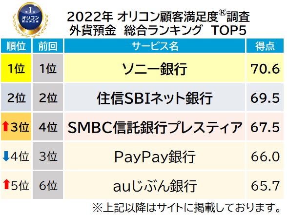 2022年 オリコン顧客満足度(R)調査 『外貨預金』ランキング