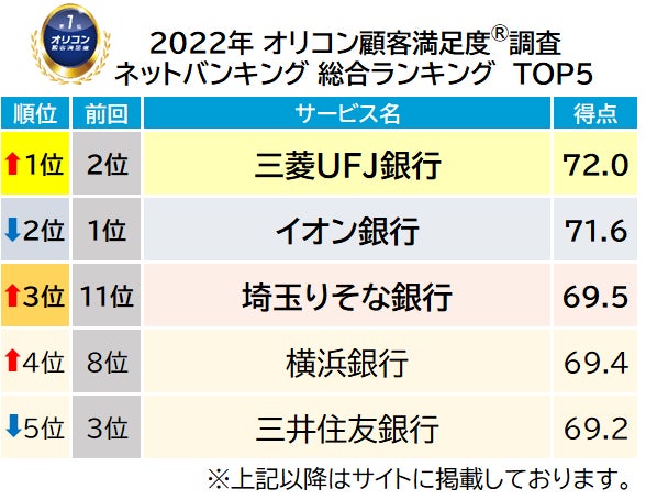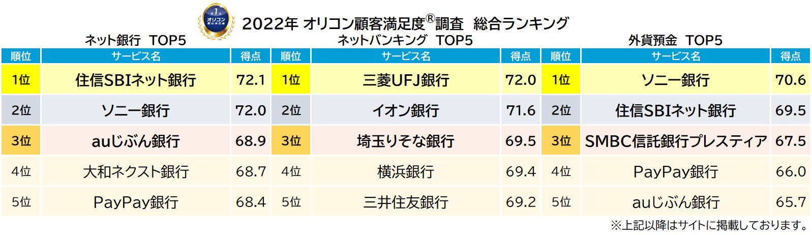 2022年 オリコン顧客満足度(R)調査 『ネットバンキング』ランキング