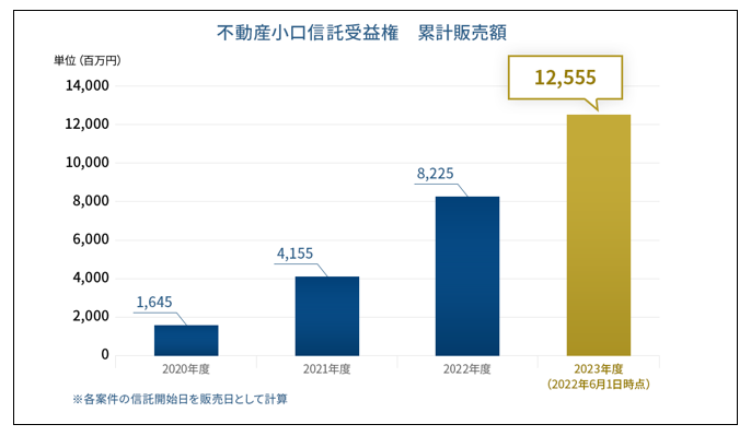 本商品の完売により、当社は、合計8案件、累計12,555百万円の不動産小口信託受益権を販売いたしました。また、お客様の不動産小口信託受益権に対する需要は高く、そのニーズに応えるべく、当社は引き続き新たな商品の販売準備を進め、当社の直営店舗ならびに地域金融機関との共同店舗のお客様の他、提携する税理士事務所・公認会計士事務所等からご紹介いただきましたお客様にご案内をしてまいります。
