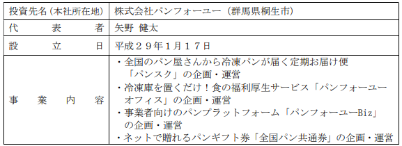 株式会社パンフォーユーに対する投資決定について