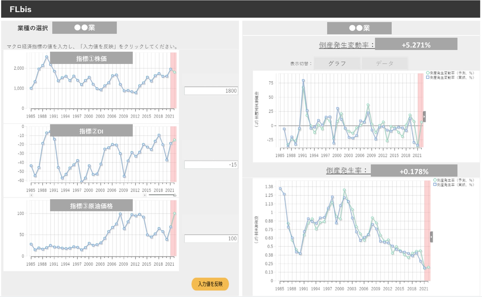 株式会社帝国データバンクは、2022年6月2日より、倒産に影響を及ぼすマクロ経済指標から将来の業種別倒産発生率を予測するモデル【倒産発生率シミュレーションツール「FLbis」】(フォワードルッキングビズ)の提供を開始いたします。