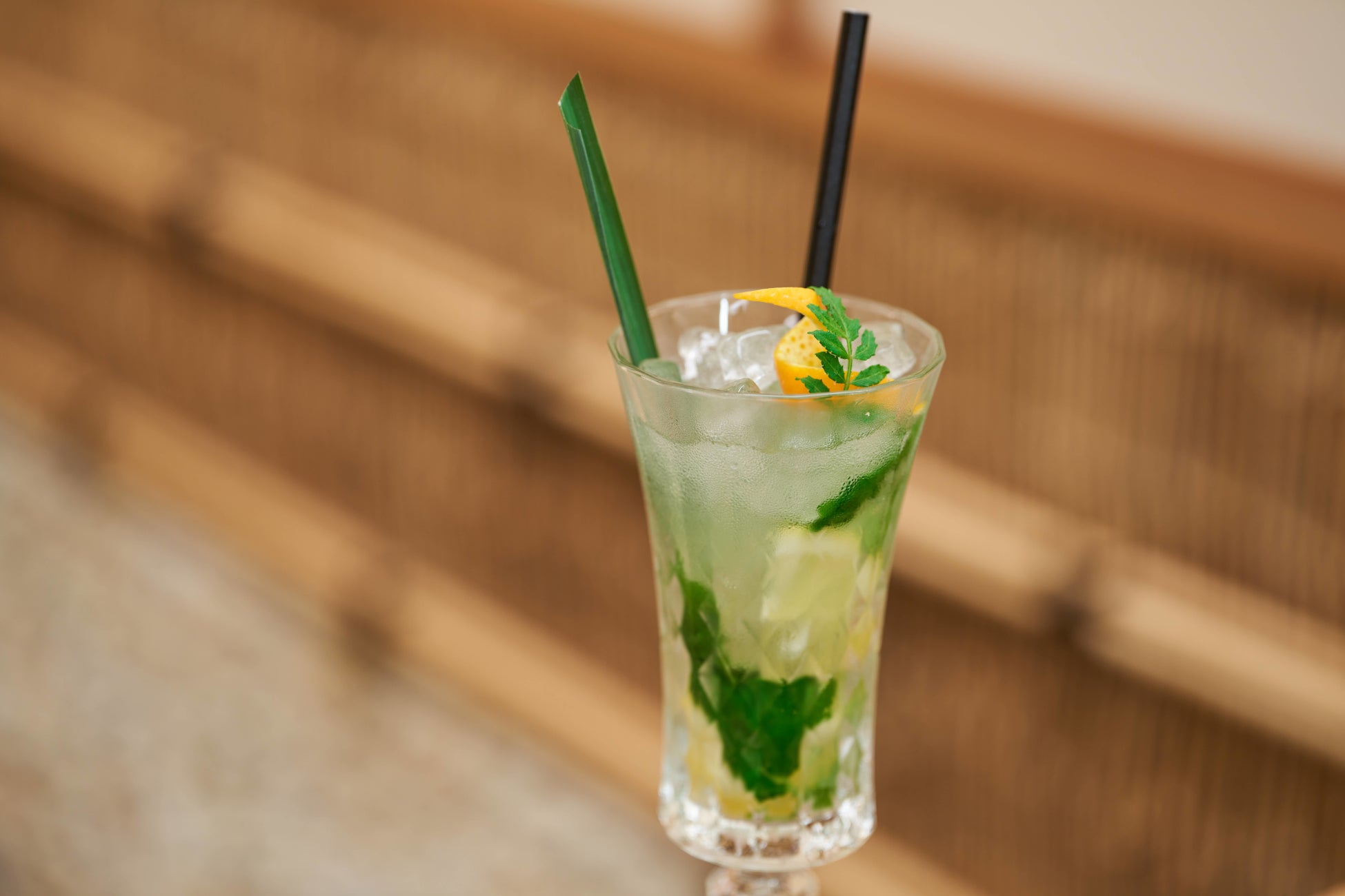 果実とバニラのアロマが漂う、ボタニカルで上品なテイストの「季の美 エディションG exclusively blended for L.C.」をベースに、レモンバーム、レモンオレオサッカラム、柚子リキュールなどを合わせ、アクセントとして木の芽、柚子ビターを加えてシャンパンで満たしたジュレップスタイルのカクテル。