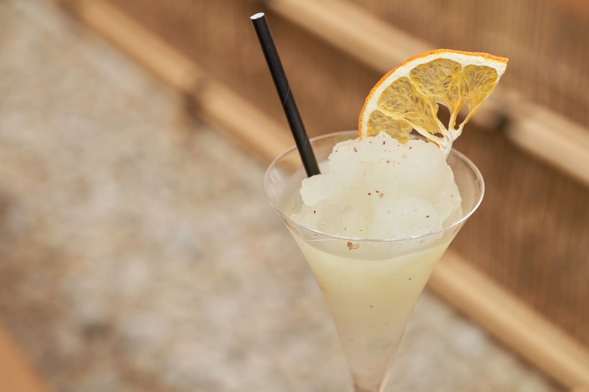 与那国島の黒糖を加えたオールドトムジン「季の糖島」(きのとう)をベースに、自家製の甘夏シロップ、すだちを合わせ、初夏を感じさせる爽やかなフローズンスタイルに仕上げました。柑橘と相性の良い生姜、山椒をアクセントに加えることでスパイシーな余韻を表現しています。