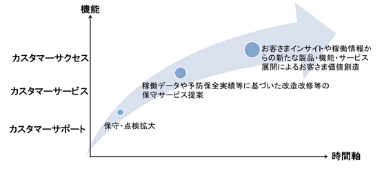 * カスタマーサクセス:お客さまが自社製品・サービスを使うことで,成長・成功体験を得ることを支援するビジネス。IHIでは,「お客さまへの価値提供によってお客さまが変わる」レベルへの到達を目指している。