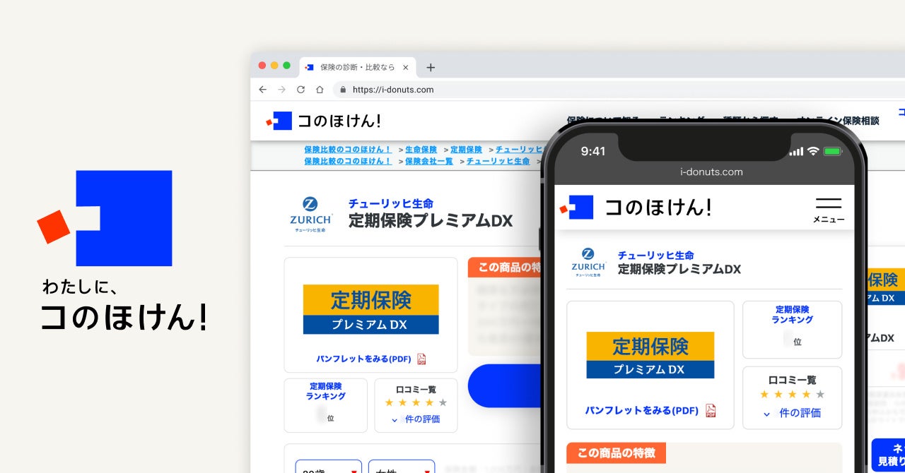 Sasuke Financial Lab 株式会社(本社:東京都千代田区、代表取締役社長:松井清隆、以下「当社」https://sasukefinlab.com/ )が運営する保険の診断・一括比較・見積もりサイト「コのほけん!」( https://i-donuts.com/ )において、チューリッヒ生命保険株式会社(本社:東京都中野区、代表取締役社長:太田 健自、以下「チューリッヒ生命」)の「定期保険プレミアムDX」掲載ページをリニューアルしたことお知らせいたします。口コミや同じ種類の保険商品内でのランキングが表示されるなど、お客様ご自身でより最適な保険をお選びできるようになりました。