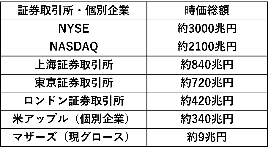 - 広がる世界の証券取引所との格差(21年末時点)