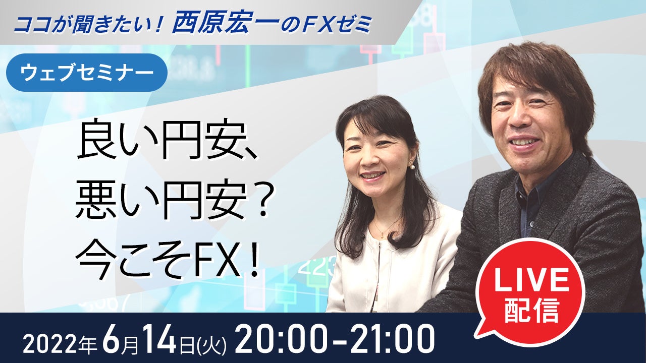 セントラル短資FX株式会社(本社:東京都中央区、代表取締役社長:松田 邦夫)は、2022年6月14日(火)20時から無料ウェブセミナー『良い円安、悪い円安?今こそFX!』(ココが聞きたい!西原宏一のFXゼミ)を開催します。