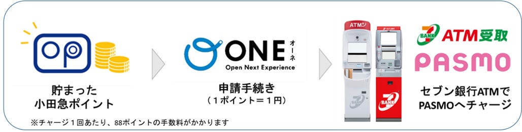 さらに、2022年8月1日(月)からはセブン・ペイメントサービスが提供する「ATM受取(電子マネーコース)」を通じて、セブン銀行ATMで原則24時間365日、「小田急ポイント」をPASMOへチャージできるようになります。