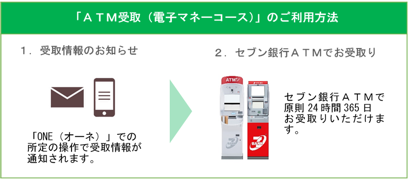 ① 「ATM受取(電子マネーコース)」のご利用方法について(https://www.7ps.jp/lp-koutsu2/)