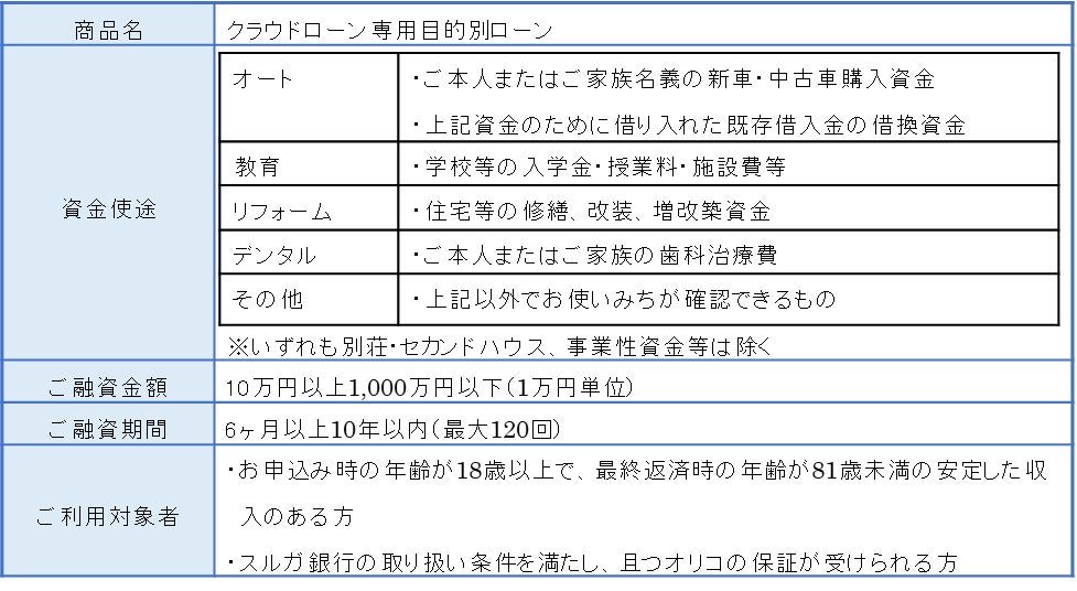 株式会社オリエントコーポレーション(東京都千代田区、代表取締役社長:飯盛 徹夫、以下「オリコ」)は、スルガ銀行株式会社(静岡県沼津市、取締役社長:嵯峨 行介)と個人ローンマッチングプラットフォーム「クラウドローン」の新機能である事前審査サービス(※)を活用した「クラウドローン専用目的別ローン」の取り扱いを、2022年6月17日より開始いたします。