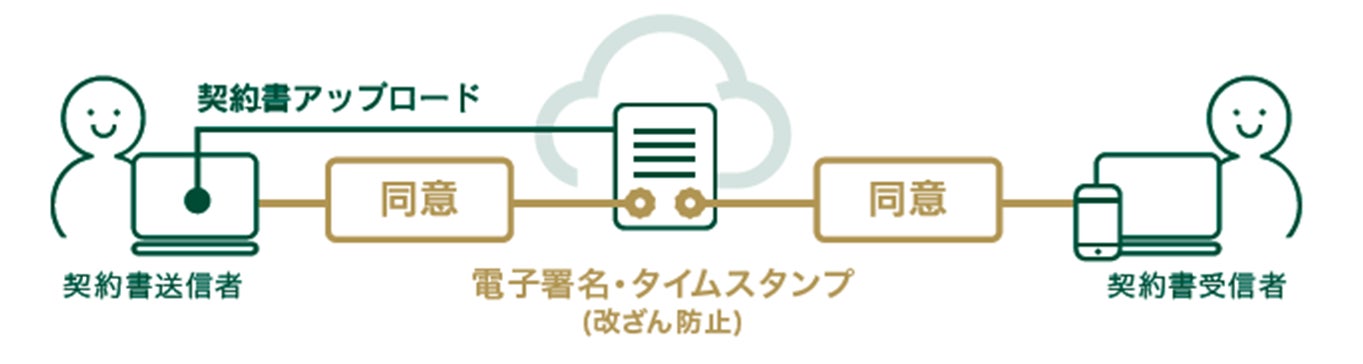 ローン条件が確定した完成済みの無担保ローン契約書をスルガ銀行が送信者としてクラウド上にアップロードし、借主であるお客さまが受信者として承認するだけで契約を締結することができます。
