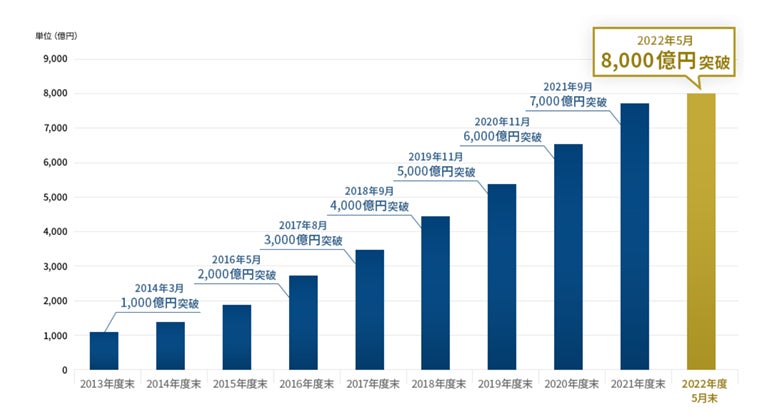 ※注1:取扱額とは、当社の前身であるリアルマーケティング・ショップ株式会社から起算したアルヒ株式会社(旧SBIモーゲージ株式会社)の「フラット35」、および住信SBIネット銀行の銀行代理業者として販売する「住宅ローン(旧ミスター住宅ローンREAL)」「フラット35」の各融資実行額の合計です。なお、「ミスター住宅ローンREAL」は2021年10月1日付で「住宅ローン」に名称変更しております。