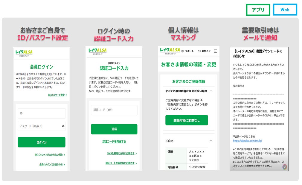 ・ログインいただいた後も、個人情報をマスキングすることで、お客さまの大切な個人情報をお守りします。