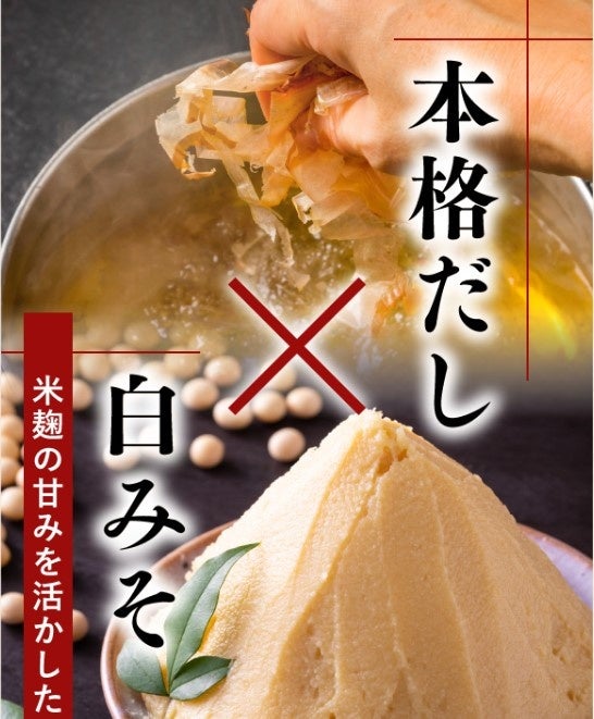 おいしさにもこだわりました。米麹の甘味を活かしたまろやかで香り豊かな「白みそ」と「だし」を使用。満足いただける風味豊かな味わいです。