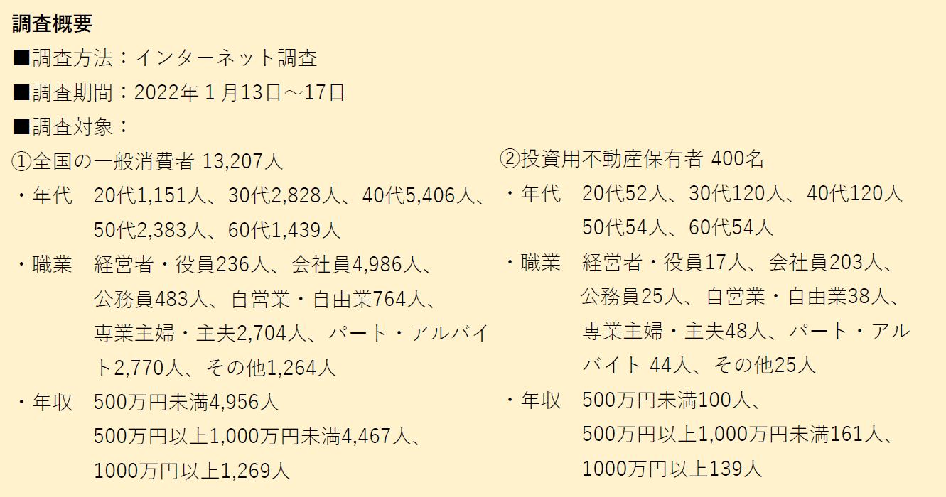 グローバル都市不動産研究所(以下、「当研究所」)では、全国の20代~60代の1万人以上を対象に、投資や不動産投資に対する興味・関心を尋ねる内容と、投資用不動産所有者400人に対して投資目的・投資意向を尋ねる調査を実施しました。