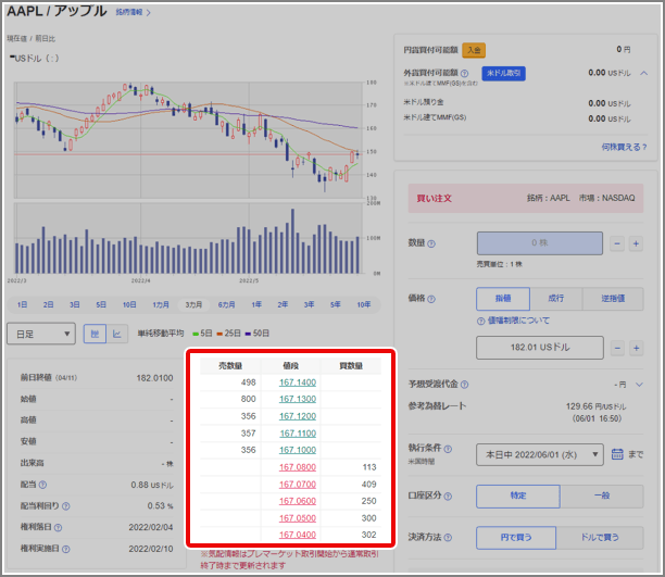 - 【「米国株オーダーブック(板情報)」 パソコン画面イメージ】