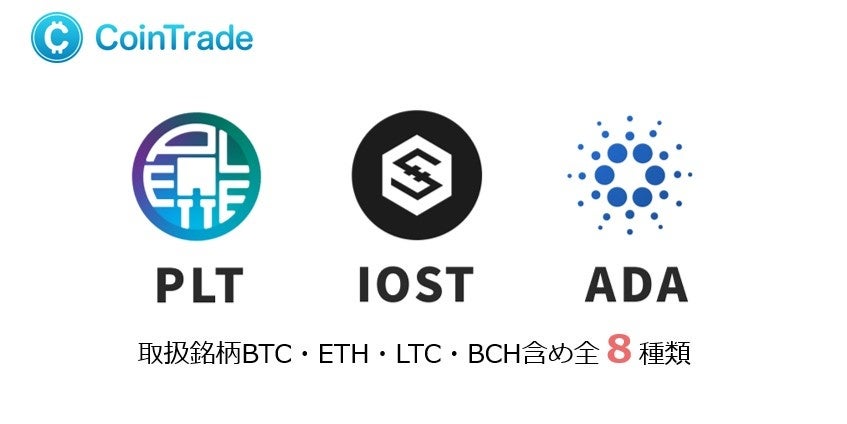 株式会社セレス(本社:東京都世田谷区、代表取締役社長:都木 聡、証券コード:3696、以下セレス)の連結子会社である株式会社マーキュリー(本社:東京都世田谷区、代表取締役社長:都木 聡、以下マーキュリー)が提供する暗号資産販売所「CoinTrade(コイントレード)」において、新たにパレットトークン(PLT)、アイオーエスティー(IOST)、エイダコイン(ADA)の取扱いを近日中に開始することをお知らせいたします。