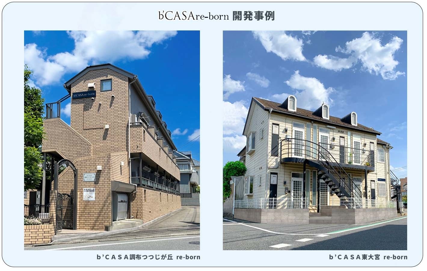 中核となる「b’CASA re-born(ビー・カーサ・リボーン)」シリーズは、築年が経過したアパートを同社のノウハウを活用してリニューアルしたもので、同社の家賃保証サービスとあわせ、安定的な利回りと高い節税効果を実現しており、既に100棟以上の販売実績を有しています。