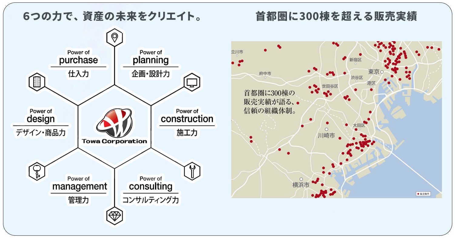 藤和コーポレーションは、「どこにもないがここにある」をコーポレートスローガンとし、「b‘CASA(ビー・カーサ)」シリーズをはじめとした住宅・オフィスビルの建設事業を中核とする建設会社です。販売棟数300棟を超える過去の実績・経験をもとに、土地の特性に合わせた建築を行うことで、高品質・短工期・高利回りを実現しています。