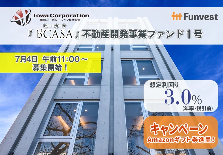 「未来をわかちあう投資」を提供する「Funvest(ファンベスト)」(以下、Funvest)は、「藤和コーポレーション 『b’CASA』不動産開発事業ファンド1号」(以下、本ファンド)の募集を7/4より開始しますので、お知らせいたします。