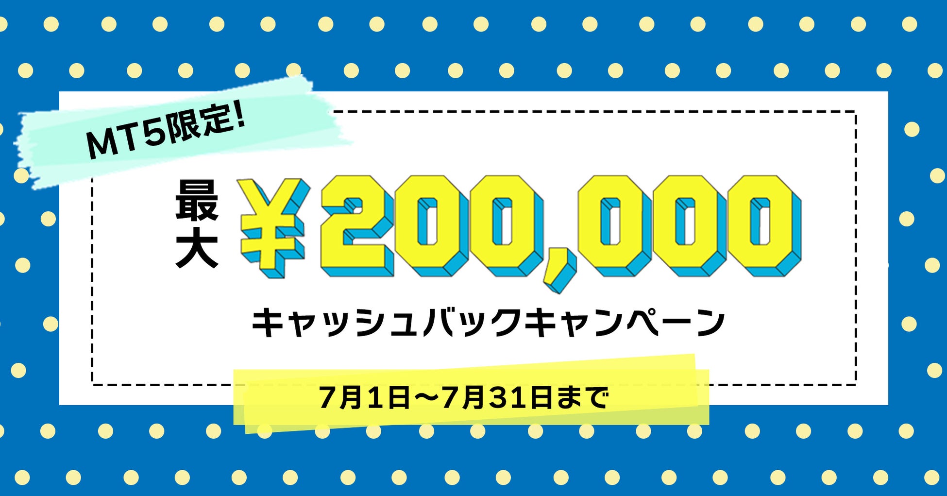 外為ファイネスト株式会社(本社:東京都千代田区、代表取締役:石野由美子)は、2022年7月1日より「MT5限定・最大20万円キャッシュバックキャンペーン」「MT4・ZERO限定!キャッシュバックキャンペーン」を実施中です。