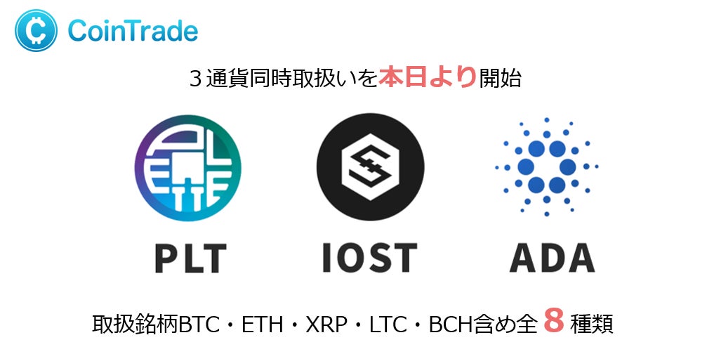 セレスの子会社マーキュリーが運営する暗号資産販売所「CoinTrade」~本日より新規通貨PLT・IOST・ADAの取扱いを開始~