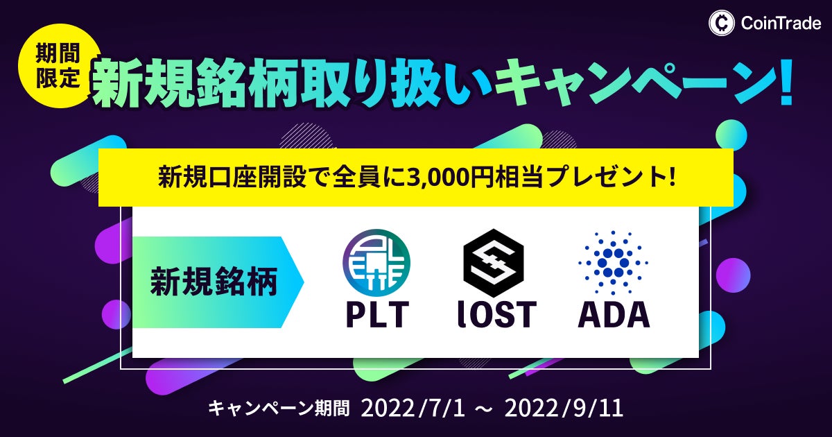 また、コイントレードでは新規暗号資産取り扱いを記念して、新規に口座開設をされたお客様全員に3,000円相当の暗号資産をプレゼントするキャンペーンも開催いたします。