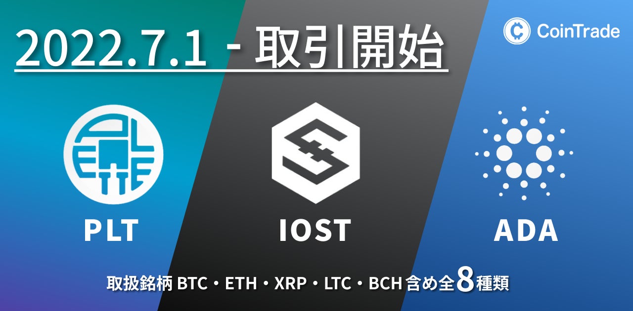 「パレットトークン(PLT)」アイオーエスティー(IOST)」「エイダコイン(ADA)」