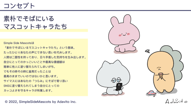 ミッション「明日の楽しみをつくる」を使命としたキャラクター企業。ビジョンである「これからの自分にワクワクできる世の中をつくる」を達成するため、キャラクター雑貨ショップ「tretoy(トレトイ)」とキャラクタータレント事務所「Simple Side Mascots(シンプルサイドマスコッツ)」を運営。