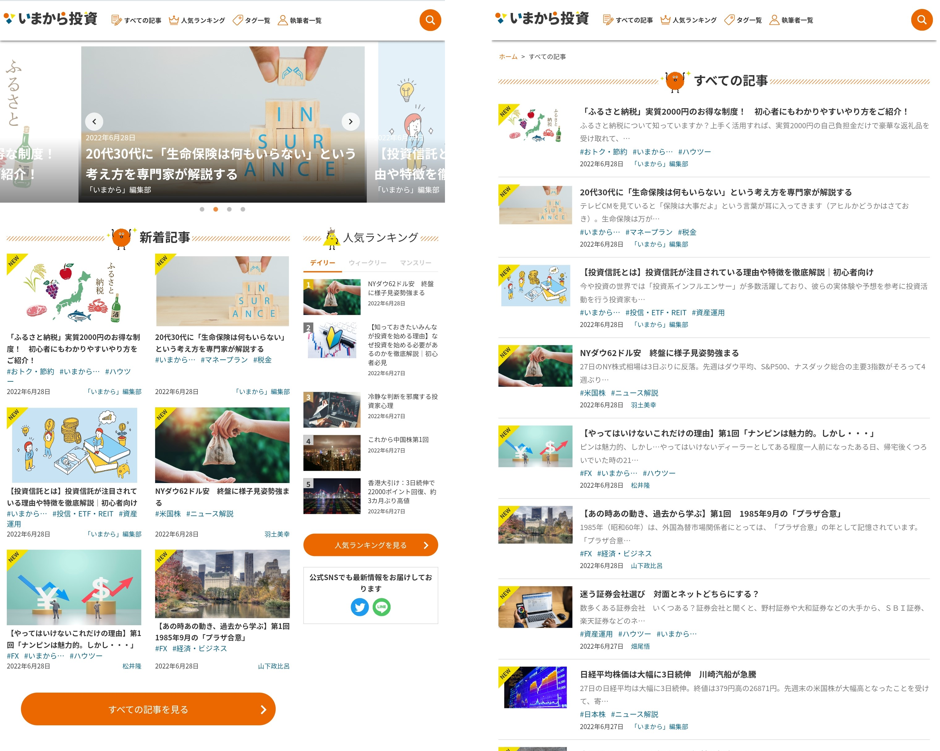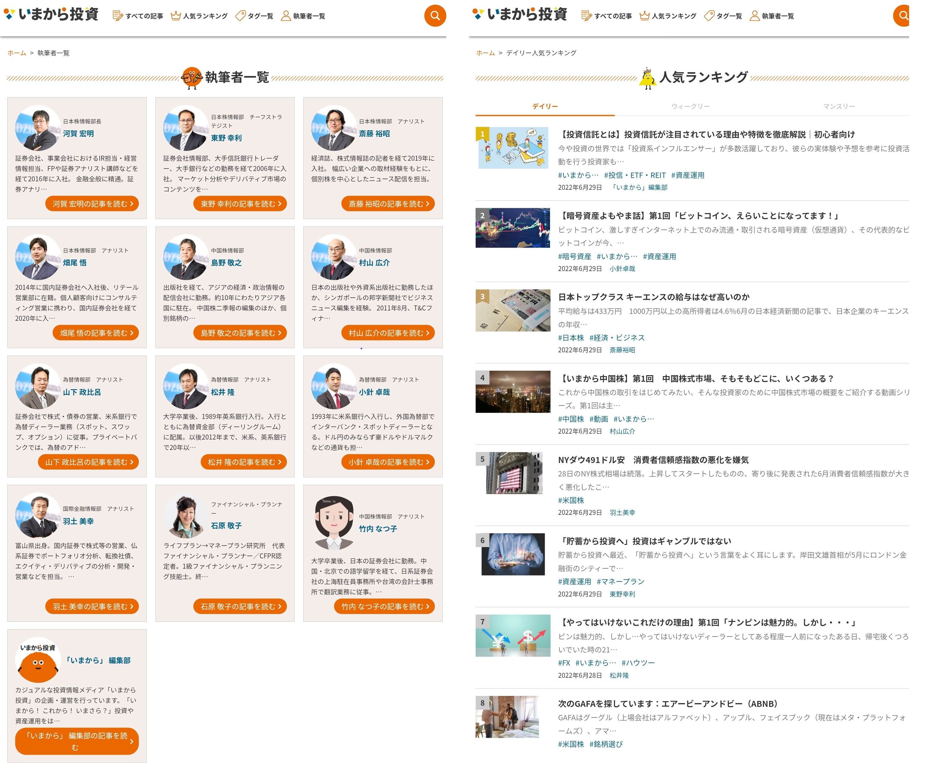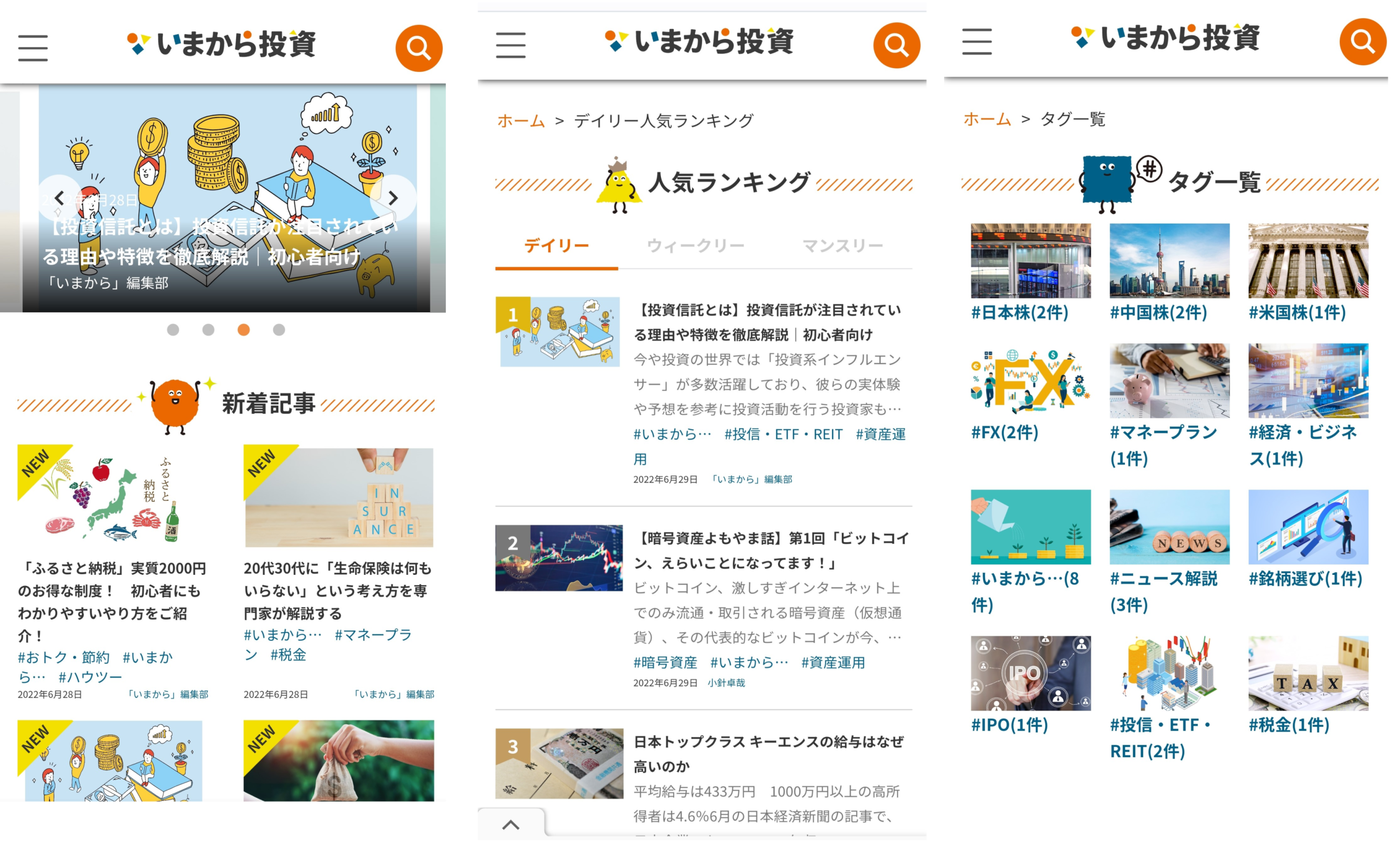 「いまから投資」では、伝統的な投資ジャンルだけでなく、「マネープラン」「保険」「税金」「不動産」「お得・節約」「ビジネス」など、より暮らしに近いフィールドにもアプローチします。より初心者向けの記事を「いまから編集部」から発信します。