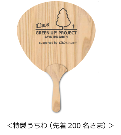 また、「SAVE THE EARTH Lions GREEN UP! DAY」では、auじぶん銀行の特設ブースを出展し、「30by30目標」達成に向けたPRと環境取り組みの呼びかけを行います。当日、auじぶん銀行特設ブースに掲示するQRコードよりecoクイズに挑戦し、正解した先着200名さまを対象に特製うちわをプレゼントします。さらに、クイズに正解した先着200名さまの中から抽選で5名さまに、埼玉西武ライオンズの選手のサイン入り色紙をプレゼントしま