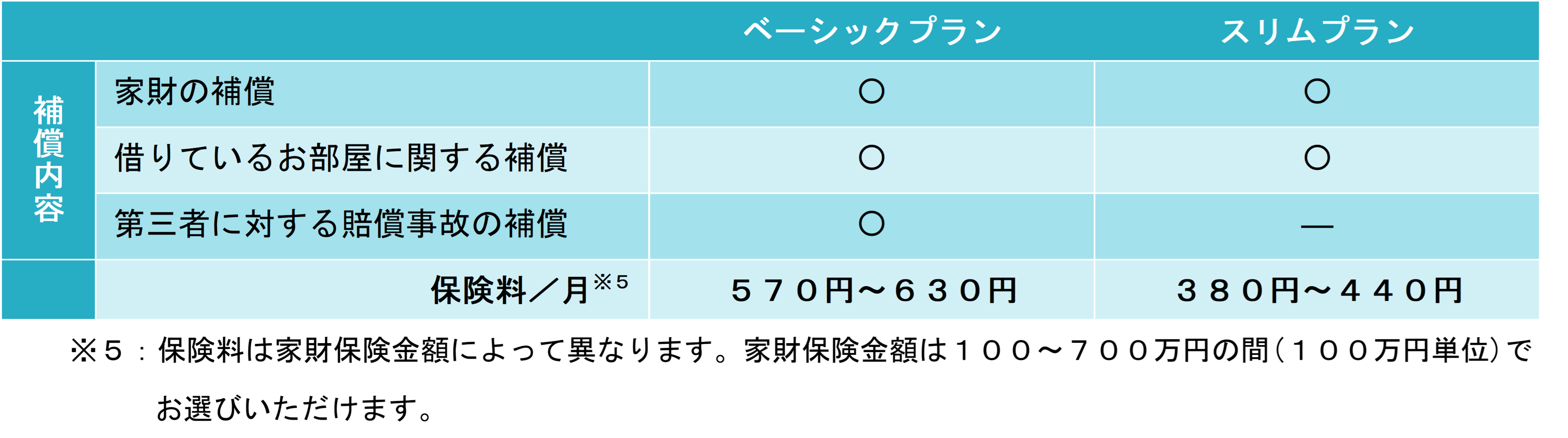 - 借用戸室に関する大家への賠償責任や緊急を要した修理費用を補償します。