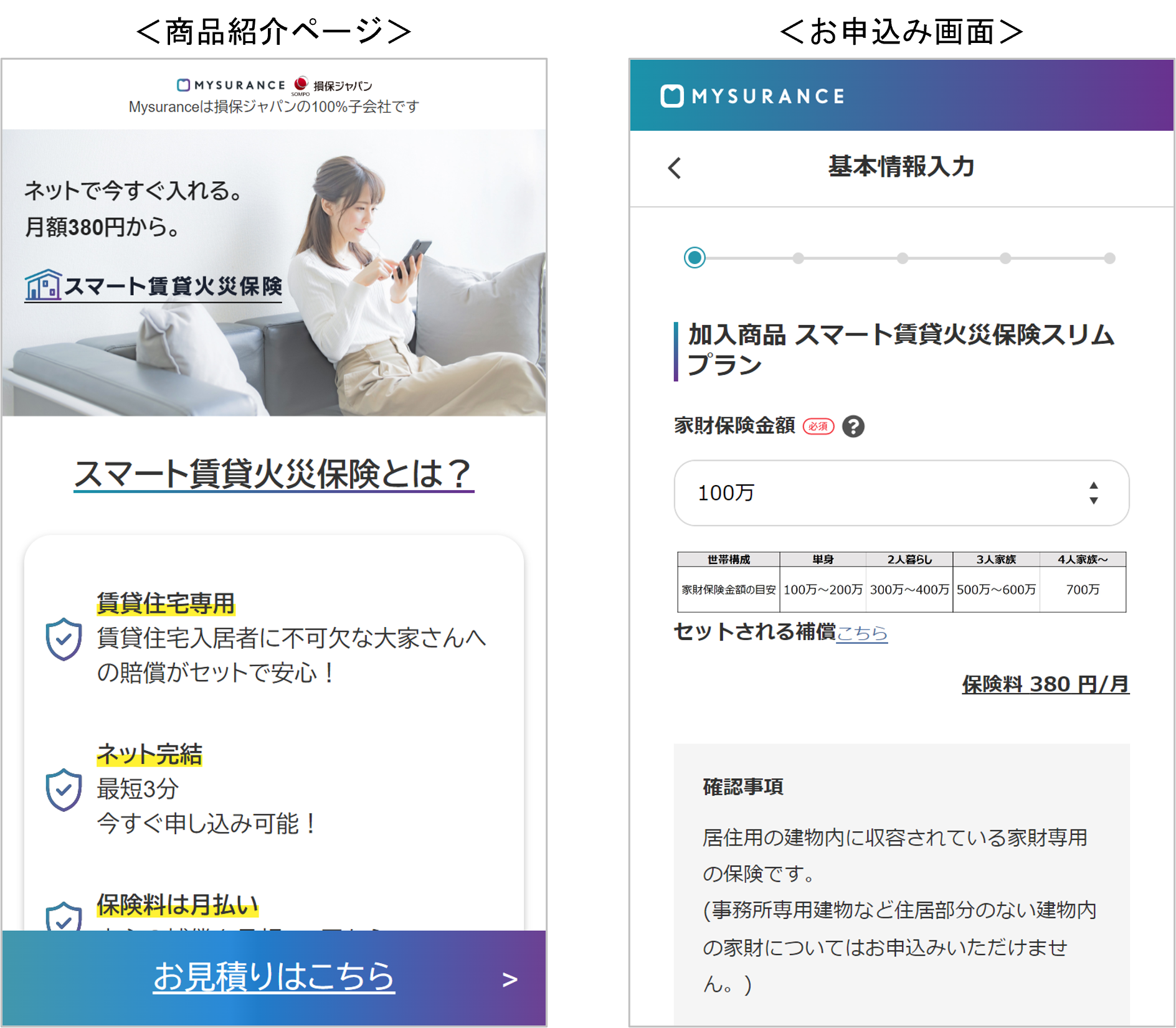 <Mysurance公式ウェブサイト商品ページ>