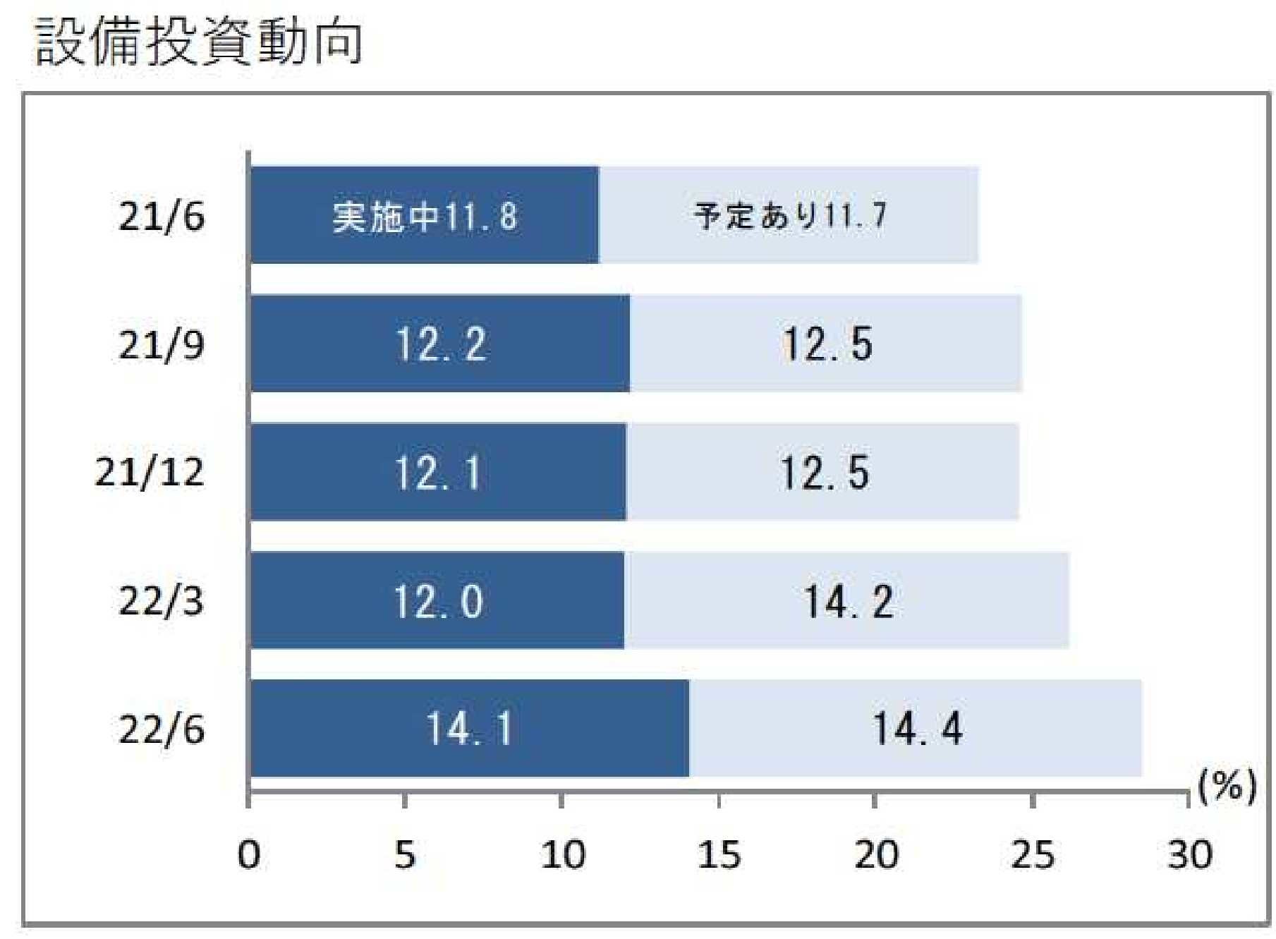 - 設備投資意欲 過去1年で最高:「実施中」14.1%「予定あり」14.4%