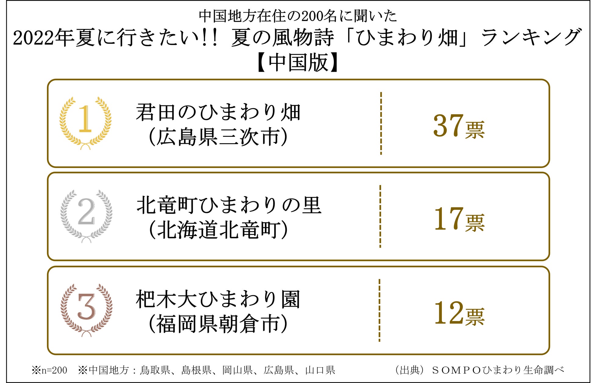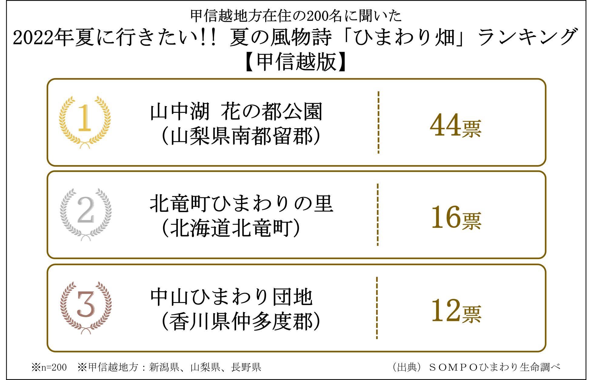 (参考地方別2022年夏に行きたい!! 夏の風物詩「ひまわり畑」ランキング