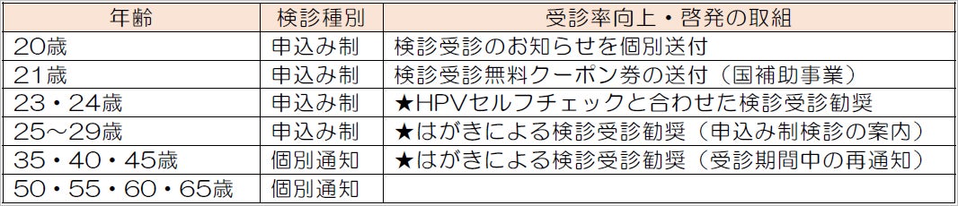 (注)個別通知対象年齢を除く20歳以上の女性が申込み制による検診の受診が可能