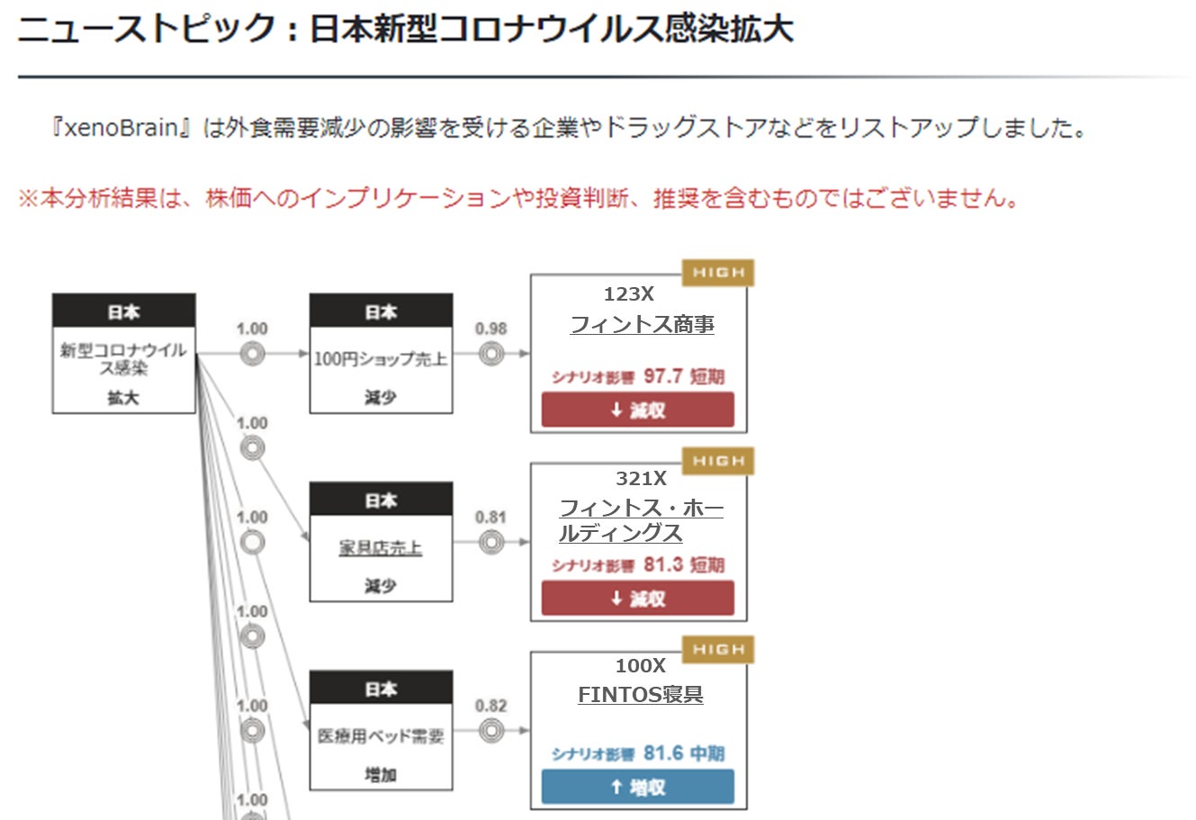 *「xenoBrain (ゼノブレイン)」とは、 株式会社 xenodata lab.が提供するニュース、統計データ、信用調査報告書、開示資料など、さまざまな経済データを独自のAIにより解析し、企業の業績、業界の動向、株式相場やコモディティ相場など、さまざまな経済予測を提供する、企業向け分析プラットフォームです。
