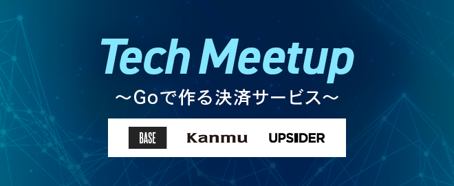 法人カード「UPSIDER」、およびビジネスあと払いサービス「支払い.com」を提供する株式会社UPSIDER(代表取締役:宮城徹、本社:東京都港区、以下 当社)は、株式会社カンム、BASE株式会社と共同で、Go言語でのサービス開発に関するテックイベント「Tech Meetup 〜Goで作る決済サービス〜」を2022年8月4日(木)19:00よりオンライン開催いたしますので、お知らせします。