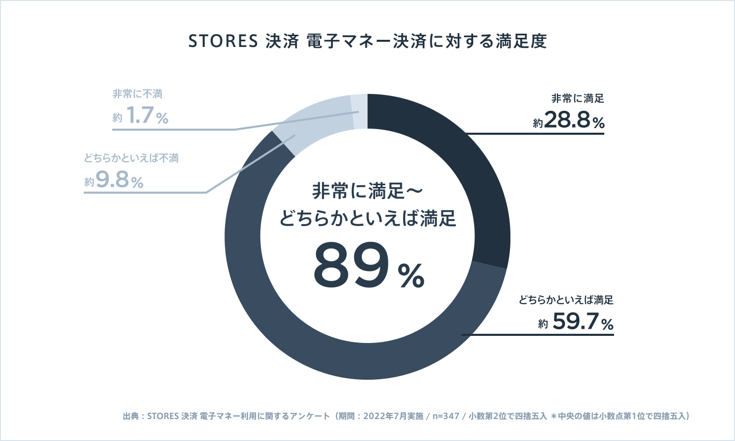 2022年7月に再び STORES 決済 利用事業者に電子マネー決済に関するアンケート調査を実施したところ、電子マネー決済の満足度は89%と、2021年9月の61.3%を大きく上回る結果となりました。(※図3)