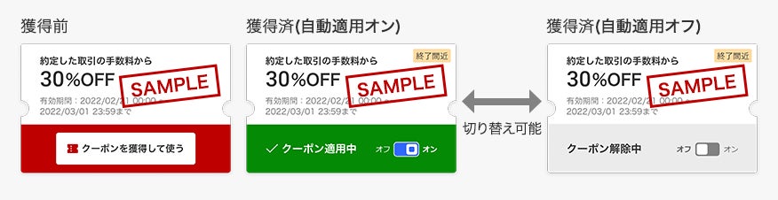 ※:同一日に複数取引(約定)がある場合、取引手数料額が最大の取引にクーポン適用