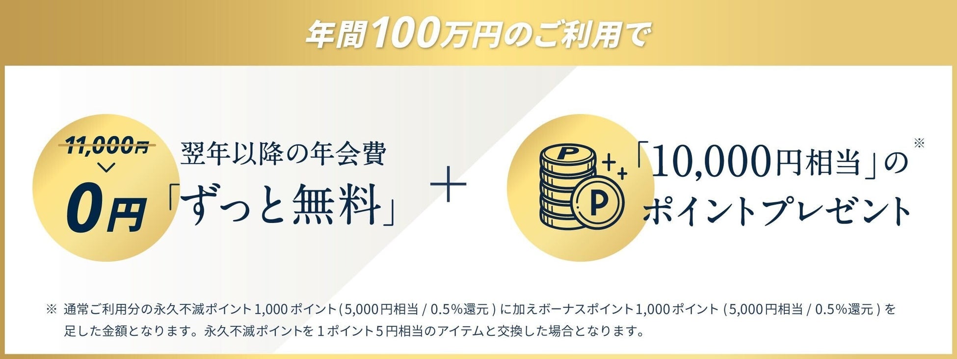 | 年会費 | 11,000円(税込) ※年間ご利用金額100万円以上で翌年以降永年無料 |