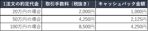 取引手数料(税抜き)の半額をキャッシュバックいたします!