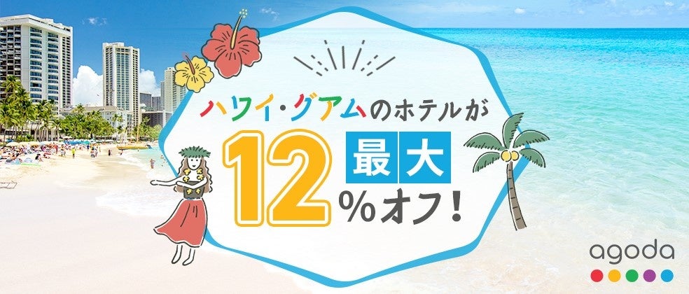 キャンペーン名称 今こそハワイ・グアム旅行!Agodaのホテルが最大12%オフ!