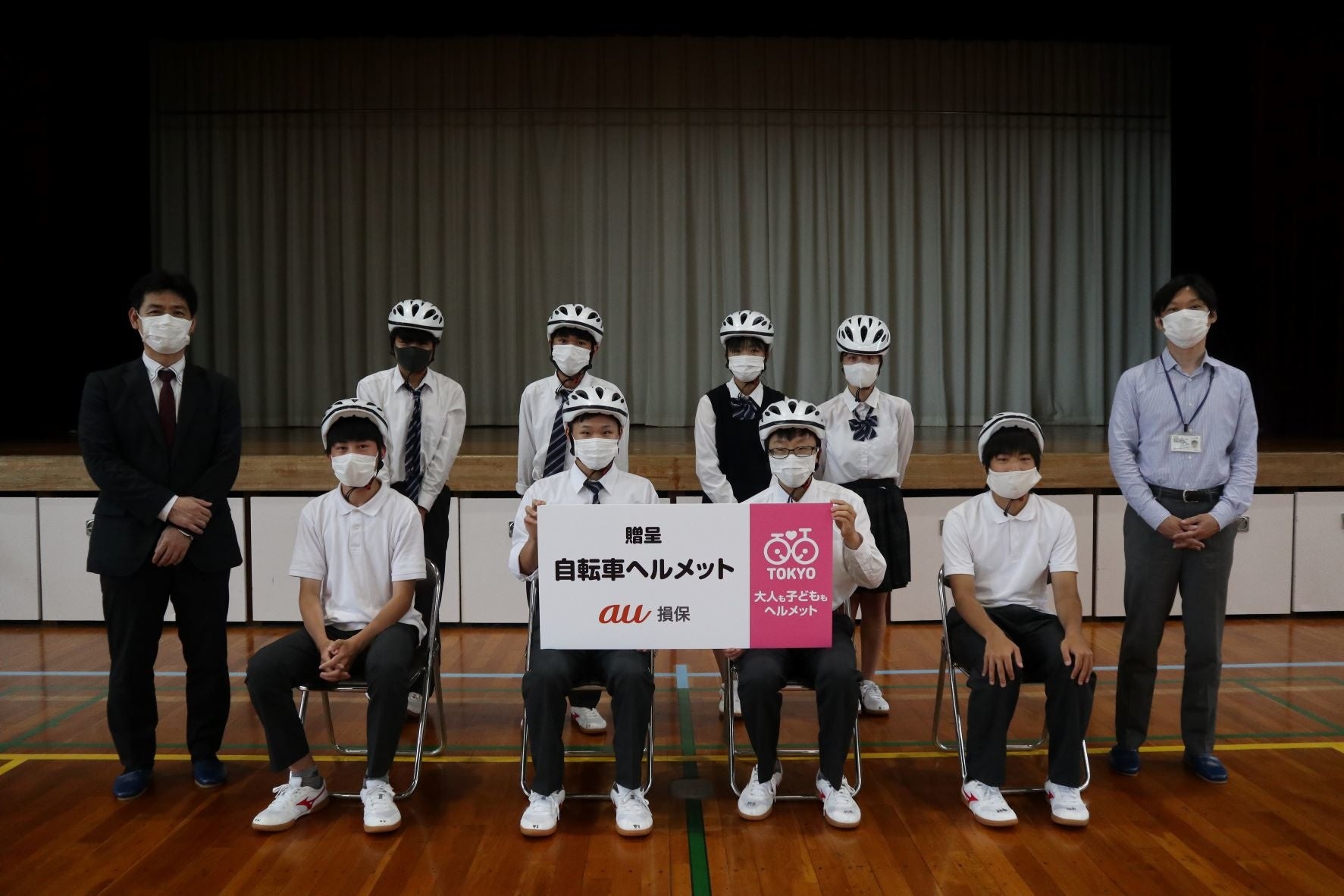 au損害保険株式会社(本社:東京都港区、代表取締役社長:山田隆章、以下、au損保)は、2022年7月13日(水)に、東京都教育委員会自転車安全運転指導推進校である東京都立小川高等学校の生徒に対して、ヘルメット179個を贈呈いたしました。これは、2016年7月にau損保が東京都と締結した「自転車の安全で適正な利用の促進に関する協定」に基づき、東京都民の皆さまがご加入いただいたau損保自転車向け保険の保険料収益の一部から拠出したものです。