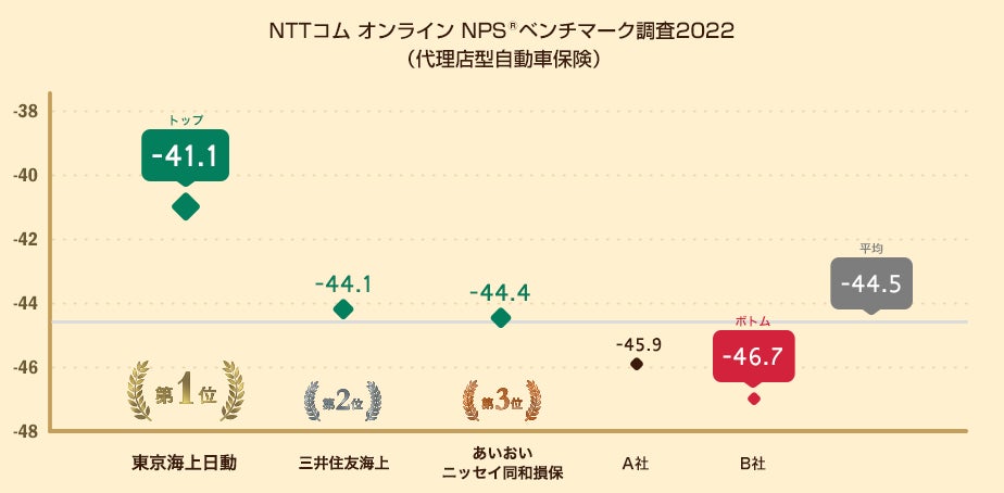 NTTコム オンライン、代理店型自動車保険業界を対象にしたNPS®ベンチマーク調査2022の結果を発表。NPS®1位は4年連続で東京海上日動