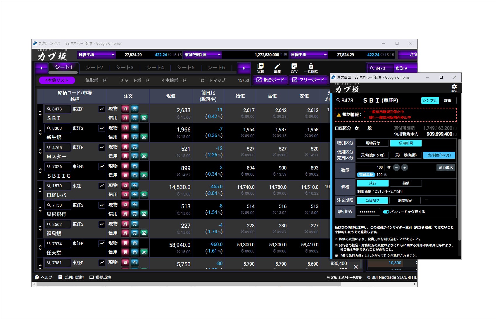 株式会社SBIネオトレード証券(本社:東京都港区、代表取締役社長:石川和幸、以下「当社」)は、2022年8月6日(土)に、国内株式の情報ツール「カブ板(かぶいた)」において、注文機能や照会機能等の大幅アップデートをリリースすることとなりましたので、お知らせいたします。