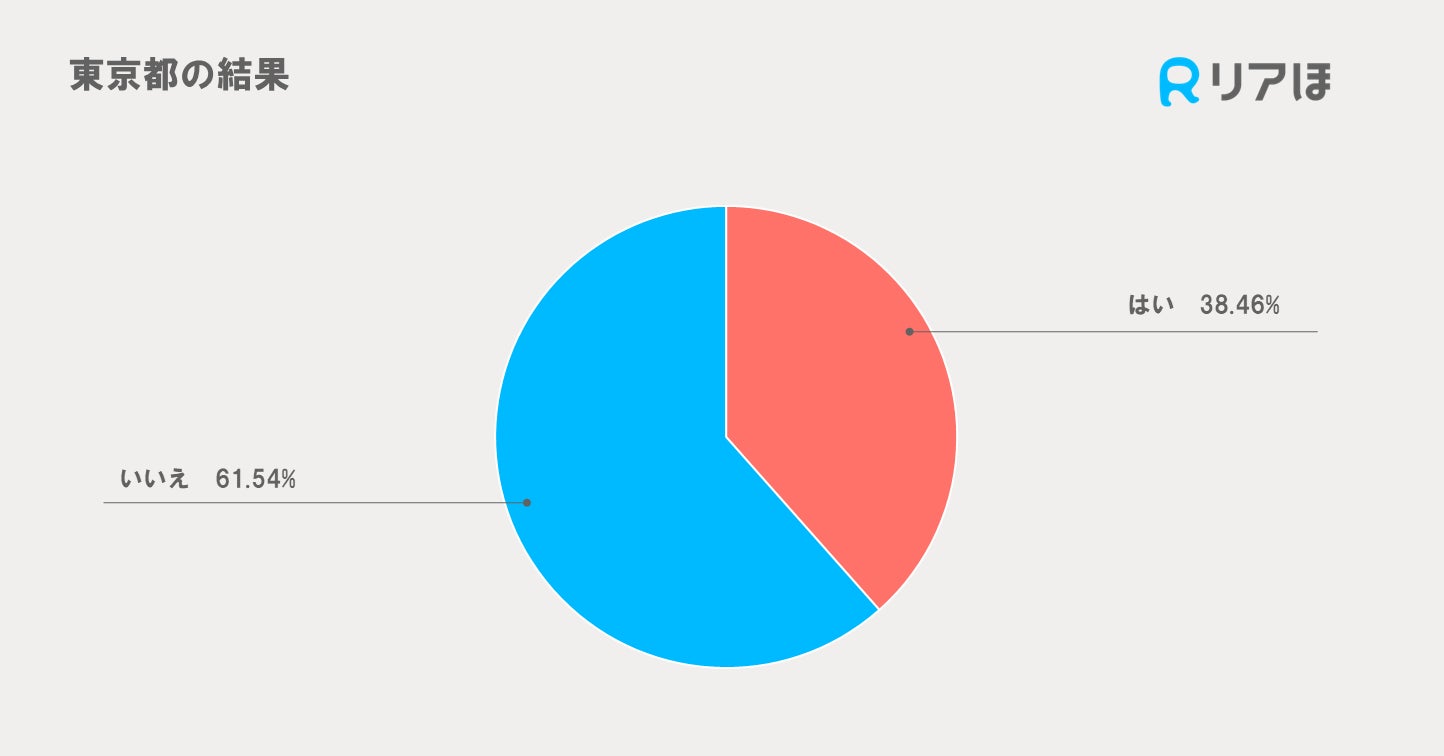 Q1の回答結果を、東京都在住の方のみで集計したところ、「はい」が38.46%、「いいえ」が61.54%となり、計画を変更した方が全国平均と比較して10%以上も多いことがわかりました。