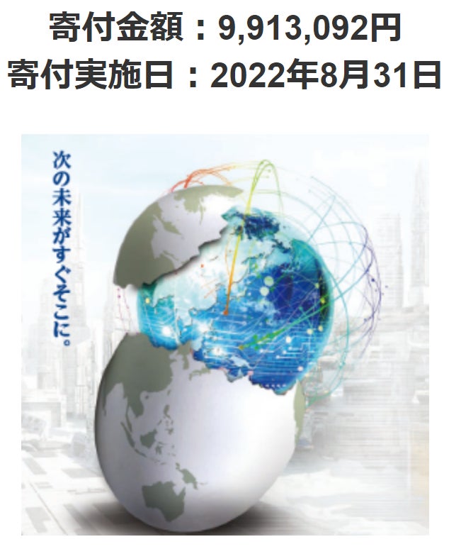 寄付先は、「国立研究開発法人 国立国際医療研究センター」、「東京大学基金 未来社会協創基金(国立大学法人東京大学)」、寄付金額は、両団体に4,956,546円ずつ、合計9,913,092円です。